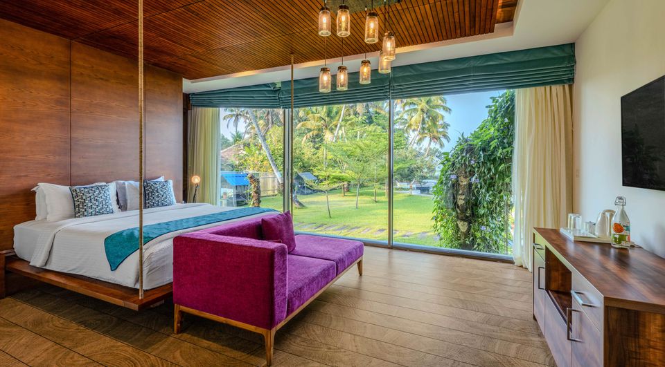 Experience tranquility in our Kochi homestay's serene retreat with a floating bed, high ceilings, and breathtaking backwater views, perfect for guests seeking elegance and calm.